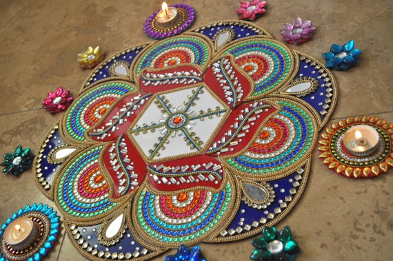Diwali Rangoli Temple Decor Puja Table Decor Diwali Party Etsy Uk